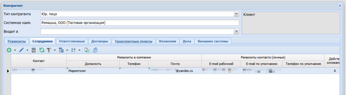 CRM \ Клиентыв пунктеСотрудникидолжны быть заполнены необходимые адресаты для отправки сообщений (Настраивает ответственный менеджер).