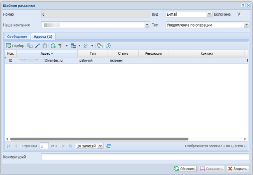 Журнал обмена. Отправка e-mail - Нажать кнопку